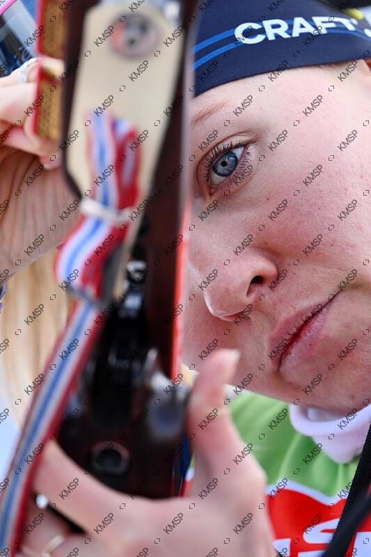 Oceane Michelon (FRA) cleans her rifle after training session of the Biathlon BMW IBU World Cup 2025, at the Grand-Bornand International Stadium, on December 19, 2025, in Le Grand-Bornand, France, Photo Philippe Millereau / KMSP