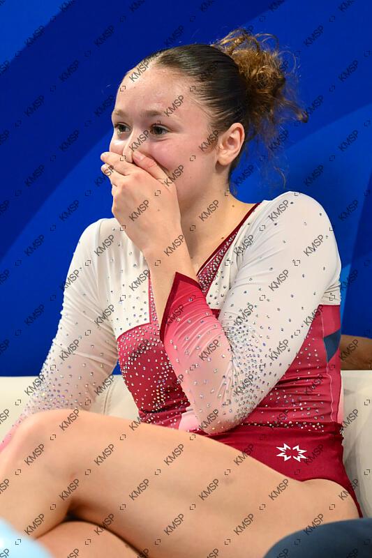 Candy Briere-Vetillard (FRA) reacts after winning the silver medal in Trampoline Gymnastics, Women's Tumbling Final, in Chengdu, Republic of China, on August 09, 2025, Photo Philippe Millereau / KMSP