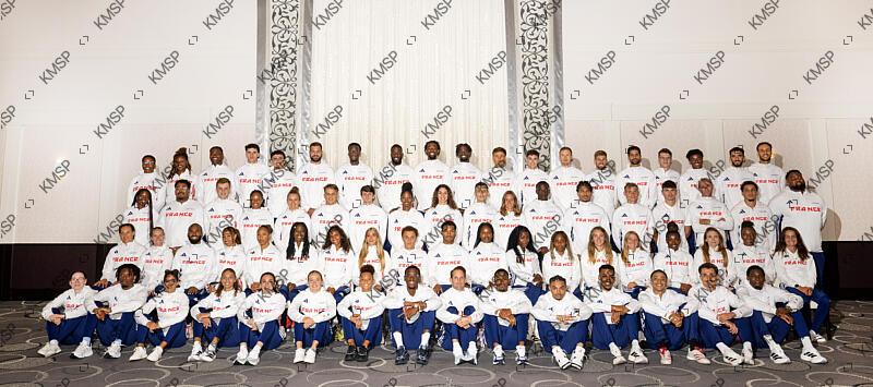 The French team poses prior to the World Athletics Championships Tokyo 2025, on September 11, 2025, at Shinagawa Prince Hotel, in Tokyo, Japan, Photo Stephane Kempinaire / KMSP