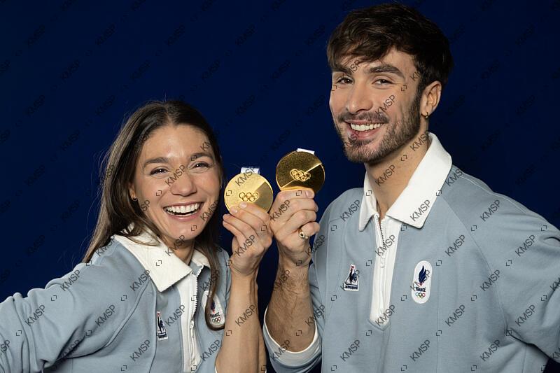 Laurence Fournier Beaudry (FRA) and Guillaume Cizeron (FRA) pose with their gold medal won in Figure Skating, Ice dance during Olympic Winter Games Milano Cortina 2026, in Milan, Italy, on February 11, 2026, Photo Philippe Millereau / KMSP
