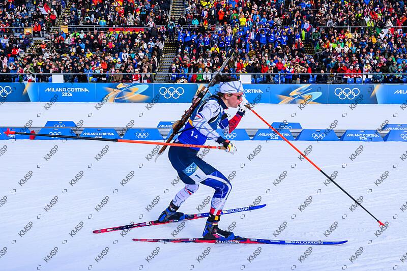 French Fans « Allez Les Bleus » support Julia Simon of team France as she competes and win Gold medal in Biathlon Mixed Relay 4x6km during the Olympic Games Milano Cortina 2026, at Anterselva Biathlon Arena, in Antholz-Anterselva, Italy, on February 08, 2026, Photo HAHN Lionel / KMSP