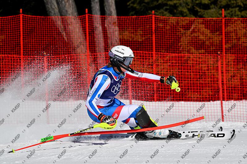 Doriane Escane (FRA) competes in Women's Alpine Skiing Slalom during the Olympic Winter Games Milano Cortina 2026, at Tofane Alpine Skiing Centre, in Cortina d’Ampezzo, Italy, on February 18, 2026, Photo Lionel Hahn / KMSP