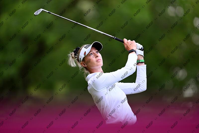 Nelly Korda (USA) competes during the first round of the Amundi Evian Championship 2024 (30th anniversary), at Evian Resort Golf Club, in Evian-Les-Bains, France, on July 11, 2024, Photo Philippe Millereau / KMSP