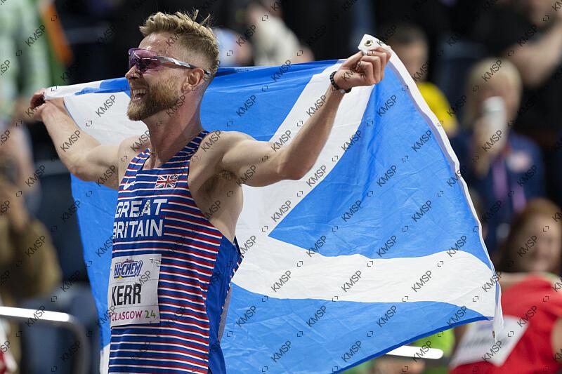 Josh Kerr (GBR) celebrates his Gold medal on Men’s 1500 m Final during the World Athletics Championships in Glasgow on February 2 March, 2024 - Photo Stephane Kempinaire / KMSP