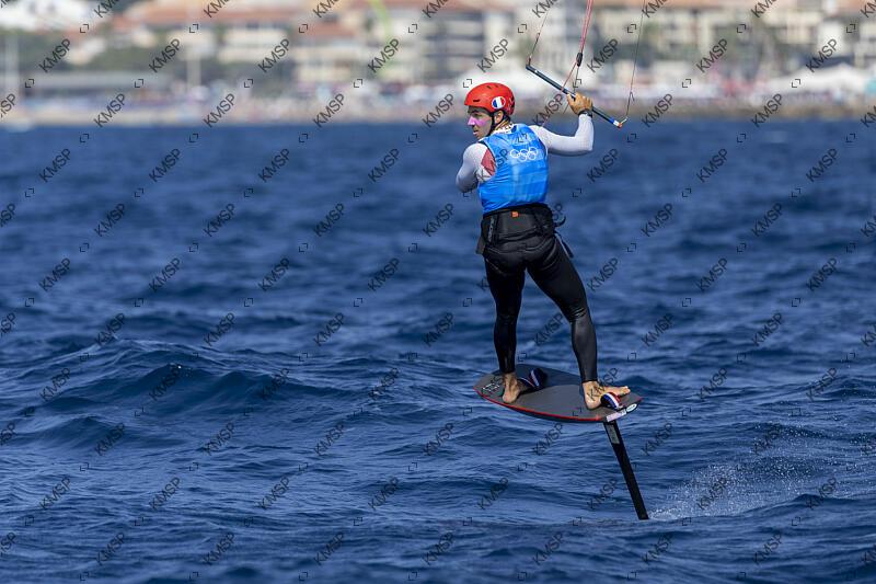 Axel Mazella (FRA) competes in Sailing Men's Formula Kite during the Olympic Games Paris 2024, during the final at rade de Marseille, in Marseille, France, on August 08, 2024, Photo Jean-Marie Liot / KMSP