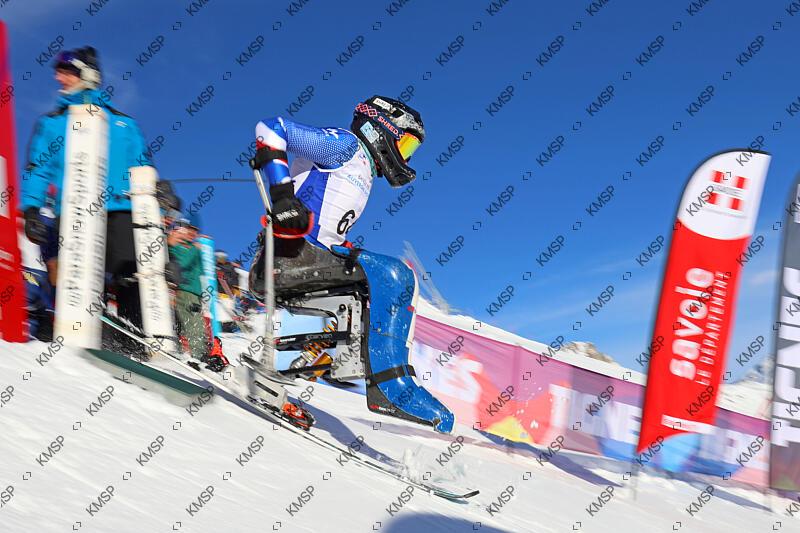 Victor PIERREL (FRA) competes in men’s Sitting slalom during FIS Para-Alpine Ski World Cup, in Tignes, France, on December 17, 2024, Photo Grégory Picout / KMSP