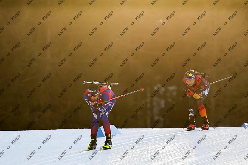 Quentin Fillon-Maillet (FRA) competes and win the Gold medal In Single Mixed Relay during the World Championships Biathlon, on February 20, 2025, at Lenzerheide, Switzerland - Photo Gaelle Mobuchon / KMSP