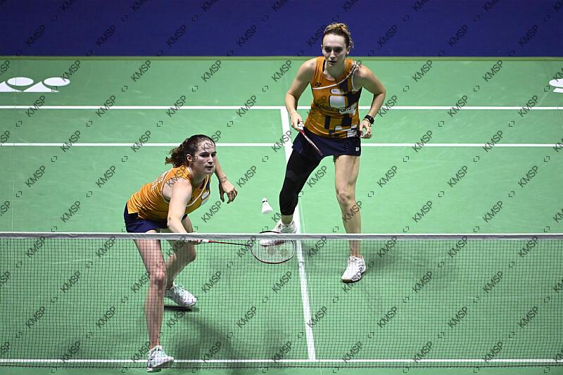 Tea Margueritte (FRA, Left) and Flavie Vallet (FRA) compete in Badminton Women's Doubles during the BWF World Championships 2025 at Adidas Arena in Paris, France on August 27, 2025. Photo Jean-Marie Hervio / KMSP
