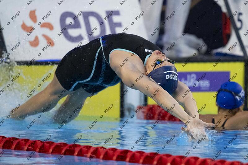 Melanie Henique (FRA) competes on Women’s 50 m Backstroke during the Short Course Swimming Championships, at the Aquatic Center Alice Milliat, in Taverny, France, on October 23, 2025. Photo Stephane Kempinaire/KMSP