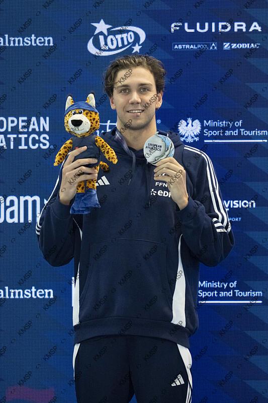 Mewen Tomac (FRA) competes and wins the Silver medal on Men’s 100 m Backstroke final during the European Aquatics Swimming Short Course Championships, at the Aqua Lublin Center in Lublin, Poland, on December 5, 2025. Photo Stephane Kempinaire/KMSP