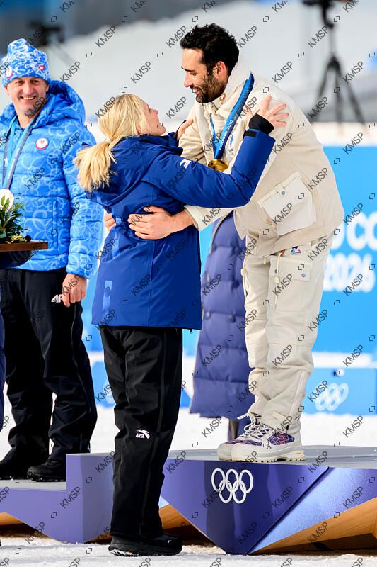 Martin Fourcade (FRA) receives his 6th Gold Medal from Kirsty Coventry, President of IOC, after the reallocation ceremony for Vancouver 2010 Olympic Winter Games Biathlon 15km Mass Start during the Olympic Winter Games Milano Cortina 2026, at Anterselva Biathlon Arena, in Antholz-Anterselva, Italy, on February 15, 2026, Photo Lionel Hahn / KMSP