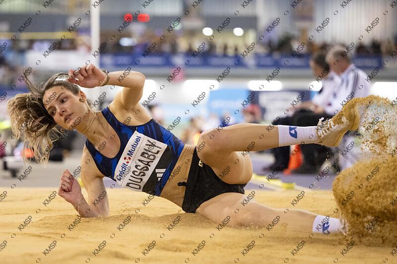 Romane Dussably (FRA) competes on women Long Jump of Penthatlon during Athletics French Indoor Championships 2026, at Jean Pellez Stadium, in Clermont-Ferrand, France, on February 28, 2026, Photo Stéphane Kempinaire / KMSP