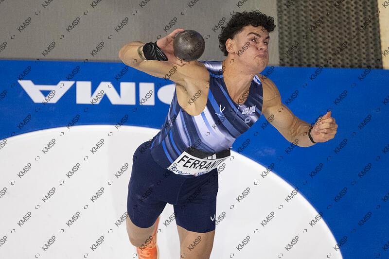 Antoine Ferranti (FRA) competes on men’s Shot Put of Penthatlon during Athletics French Indoor Championships 2026, at Jean Pellez Stadium, in Clermont-Ferrand, France, on February 28, 2026, Photo Stéphane Kempinaire / KMSP