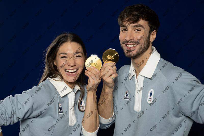 Laurence Fournier Beaudry (FRA) and Guillaume Cizeron (FRA) pose with their gold medal won in Figure Skating, Ice dance during Olympic Winter Games Milano Cortina 2026, in Milan, Italy, on February 11, 2026, Photo Philippe Millereau / KMSP