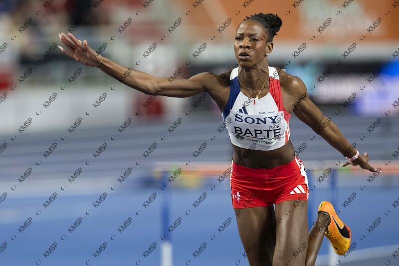 Laeticia Bapte (FRA) competes on Women’s 60 m Hurdles Semi-Final during the World Athletics Indoor Championships in Torun, Poland, on March 22, 2026, Photo Stephane Kempinaire / KMSP