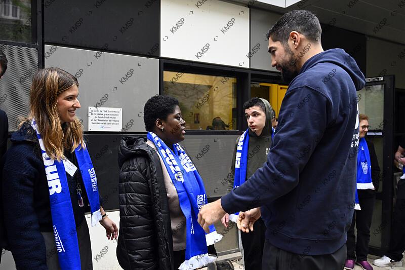 French Olympic champion Nikola Karabatic meets young people with intellectual disabilities during the Olympic and Paralympic week 2026, at IME Saint-Michel (Institut Medico-Educatif) in Paris, France, on April 01, 2026 - Photo Jean-Marie Hervio / KMSP