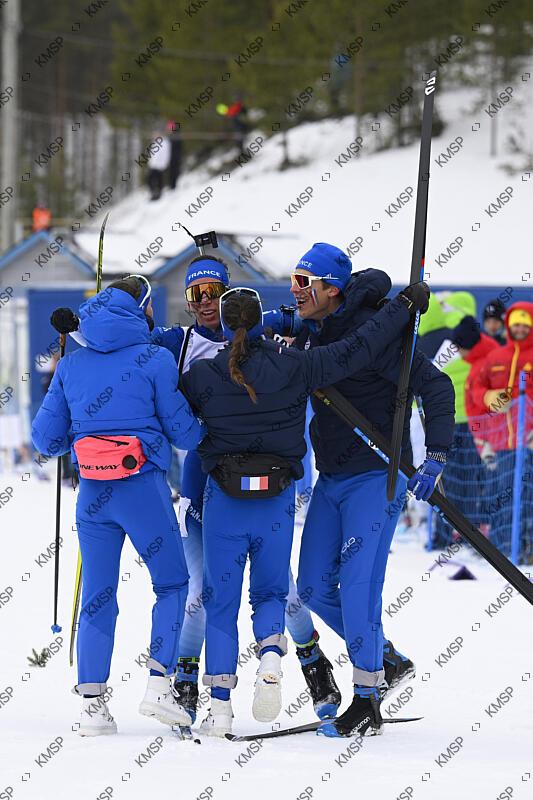 Amandine Mengin (FRA), Violette Bony (FRA), Lou Thievent (FRA) and Gaetan Paturel (FRA) win the gold medal in Mixed Relay 4x6 km Biathlon during the European Youth Olympic Festival 2022 in Vuokatti, Finland, on March 25, 2022 - Photo Julien Crosnier / KMSP